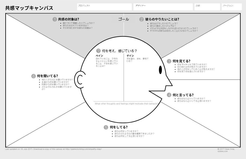 ペルソナが今置かれている状況や気持ちを状況や感情を理解するために共感マップは便利なツールです。マーケティング施策を設計する際に具体的なイメージを持てるというメリットや、メンバー間でのペルソナに対する認識のズレを小さくするというメリットもあります。